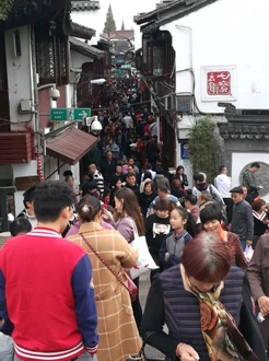 First afternoon, we went to Qibao old street. There were so many people, all looking for delicious snacks. Yes, the Qibao streeet offers a glimpse of traditional China, but most importantly, its local snacks are famous and delicious. After visiting the traditional building, a delicacy would be a great ending of the first day tourism.
